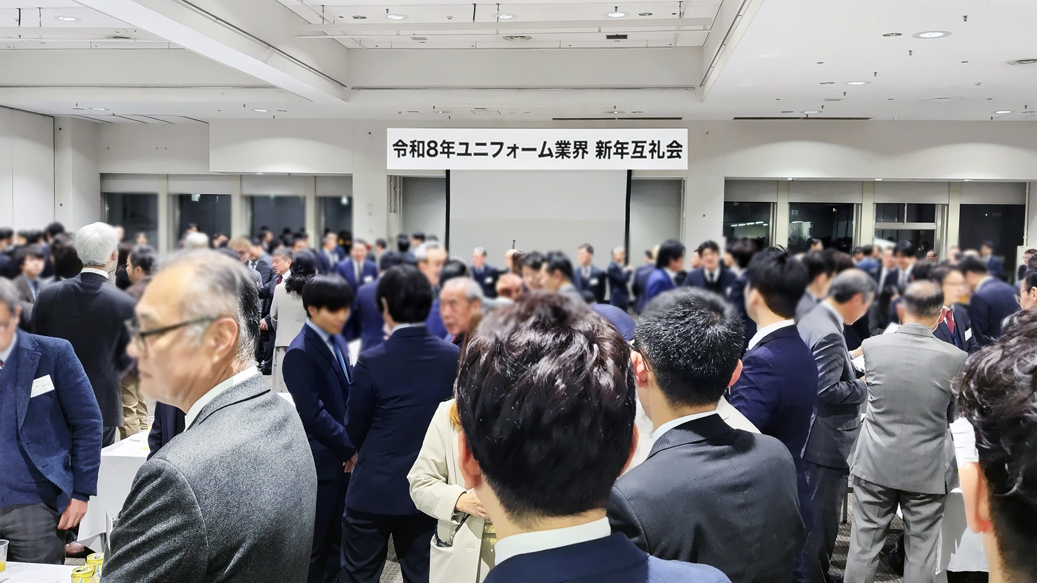 大阪府被服工業組合と日本ユニフォーム協議会は、1月5日、大阪市中央区のOMMビルで「ユニフォーム業界新年互礼会」(日本被服工業組合連合会協賛)を開催し、素材メーカー、商社、副資材・縫製機器、アパレル、販売会社、小売店など、ユニフォーム関連事業者計102社、483名(来賓ほか含む)が参加しました。
